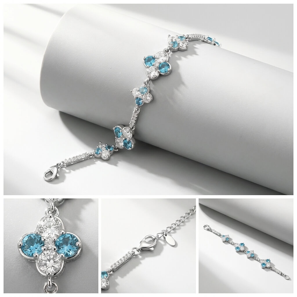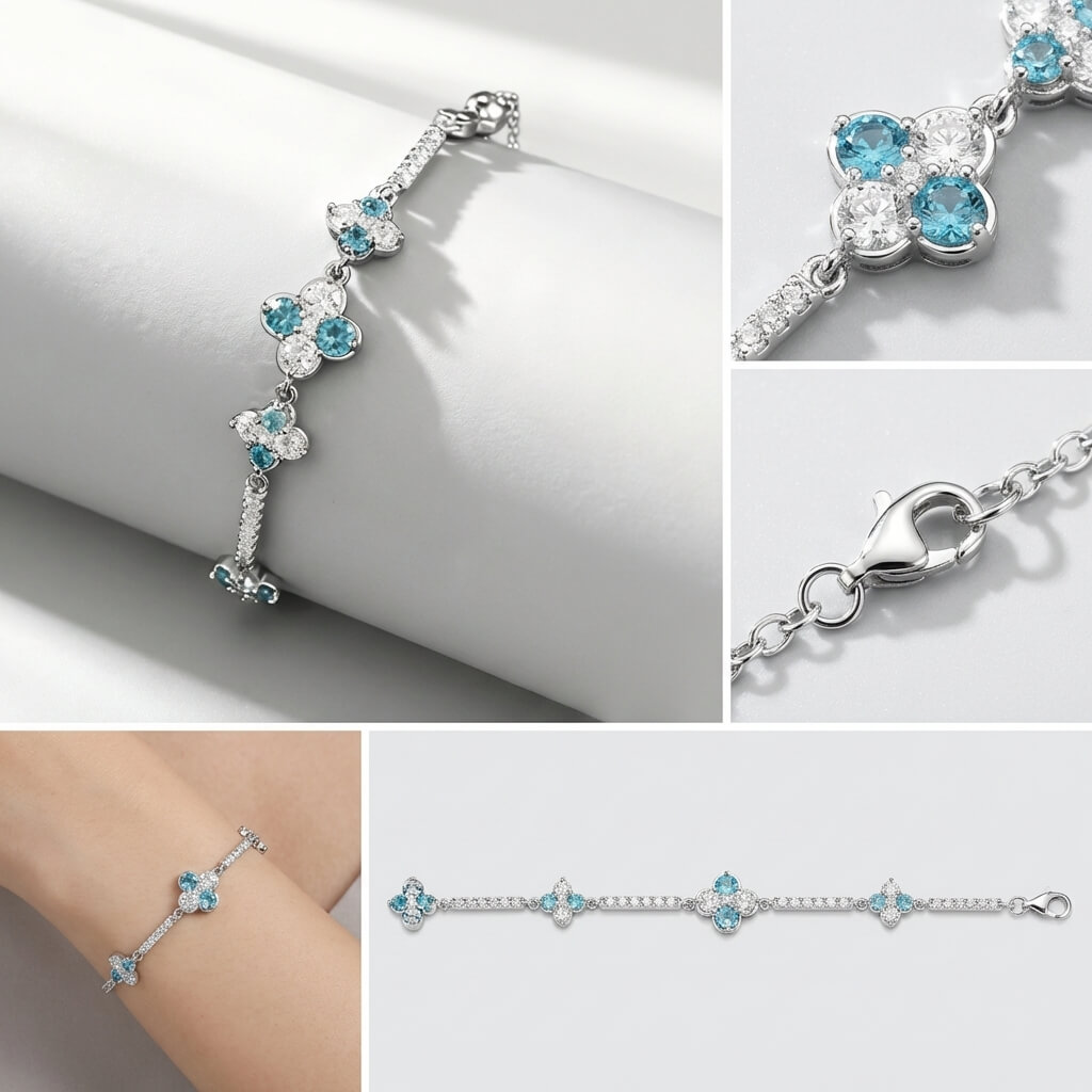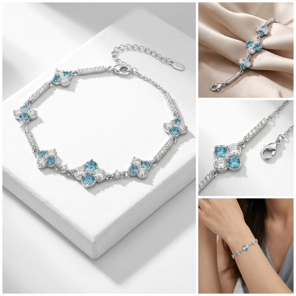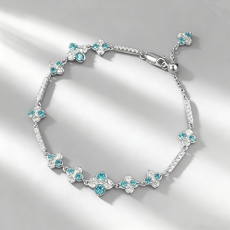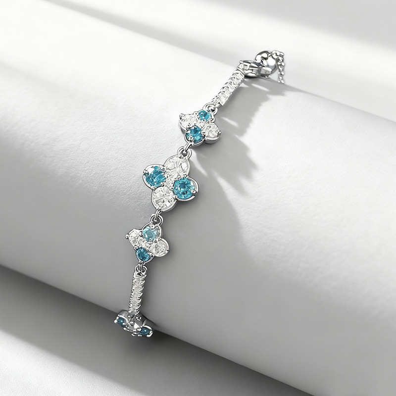 Craftsmanship:Utilizing a user-friendly adjustable chain structure, ensuring a secure fit and freedom to adjust the size for any wrist.The 6g weight combined with heavy-duty setting techniques ensures each sea-blue diamond is held securely while providing an incomparable fit for daily wear.