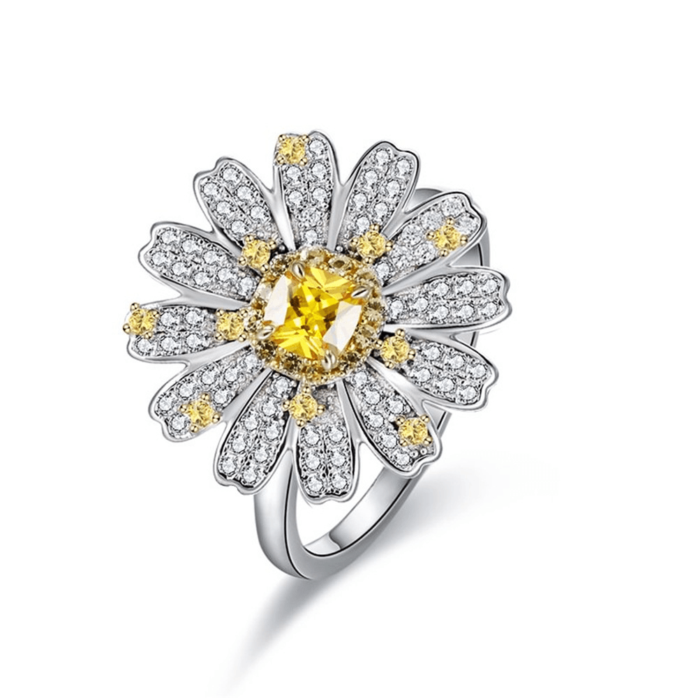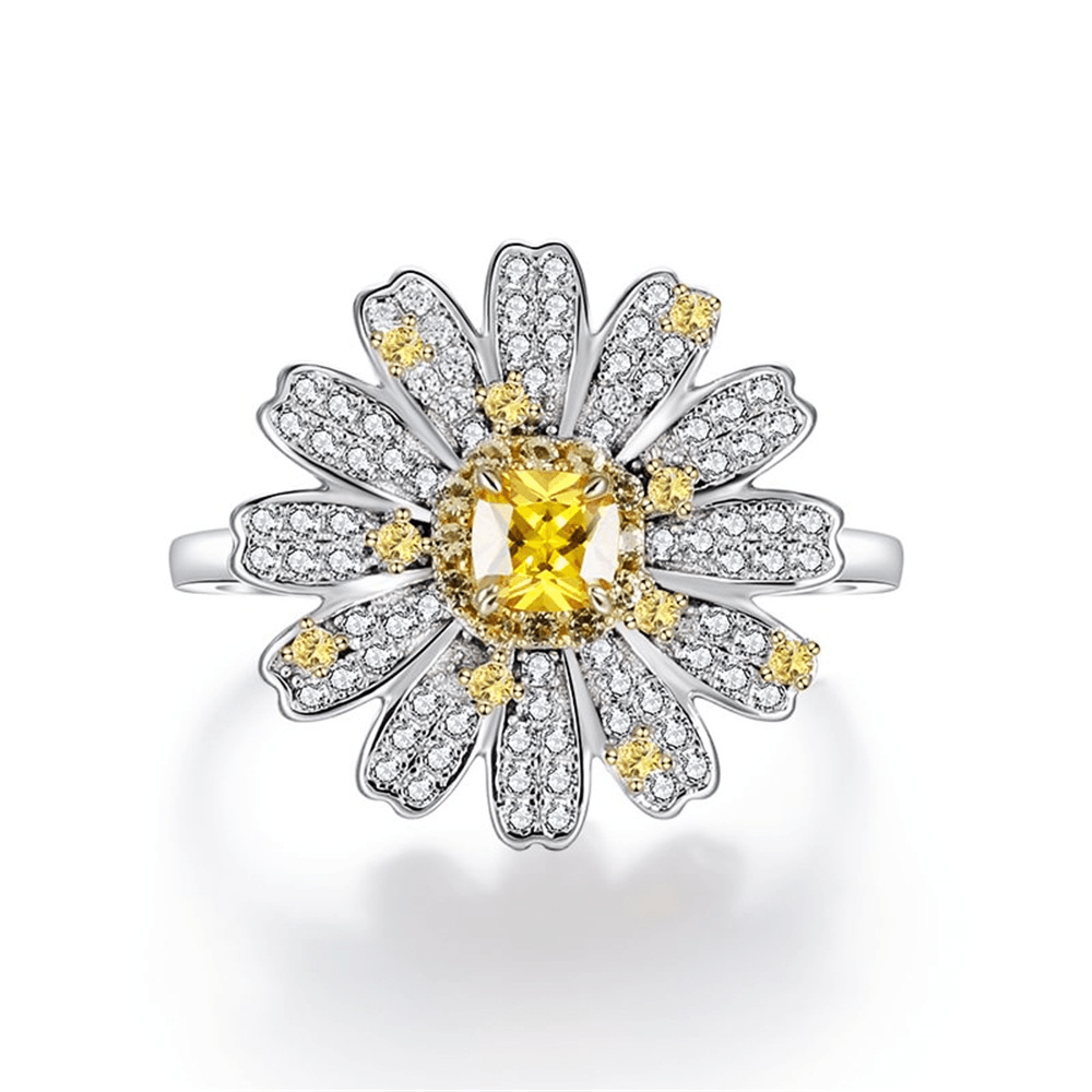 Design:Featuring a high-brilliance square yellow diamond at the center, the petals utilize multi-layered pavé-set stones accented with bright yellow gems.This floral design enhances three-dimensional natural beauty, reflecting a confident and elegant style.