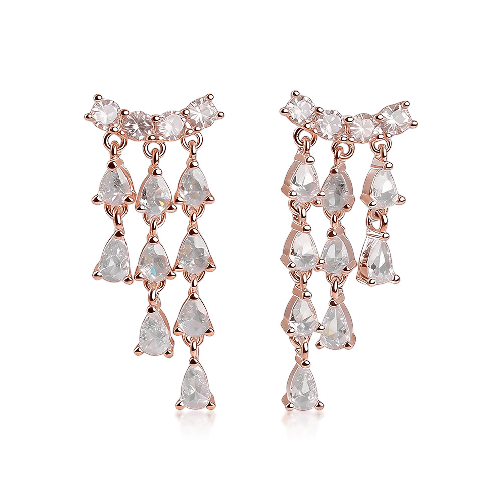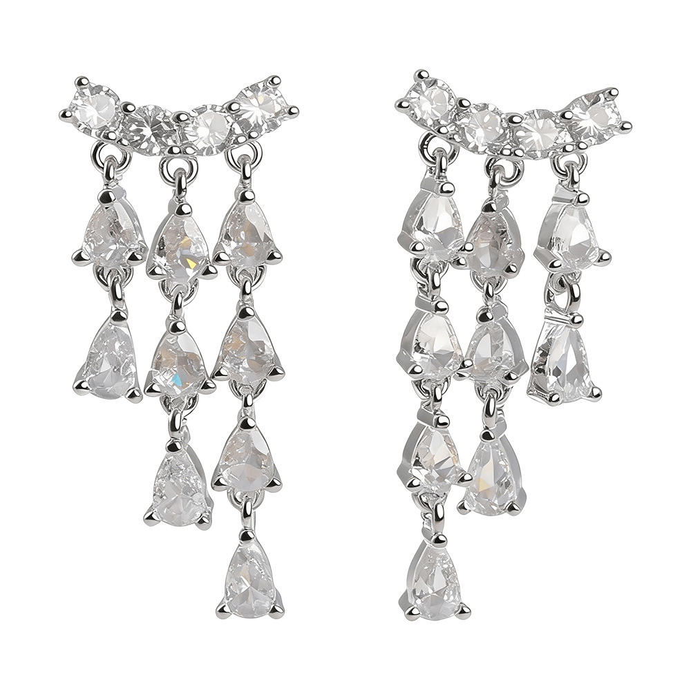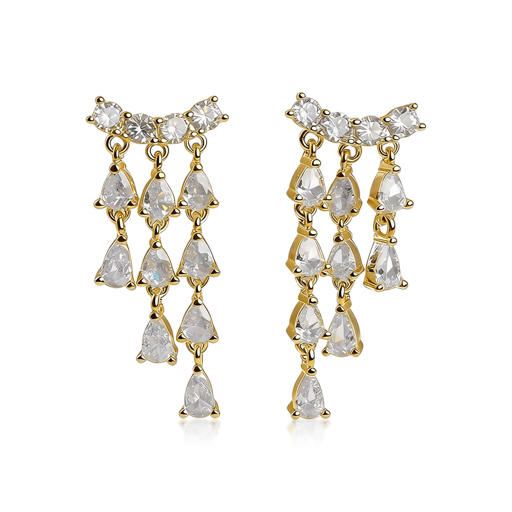 Select High-Brilliance Moissanite& Tassel Aesthetics: Design:Featuring top-tier Moissanite at the center with professional asymmetrical geometric setting artistry, consisting of a sequence of sparkling teardrop stones.This irregular arrangement enhances depth and fluid movement, reflecting a confident and elegant style.