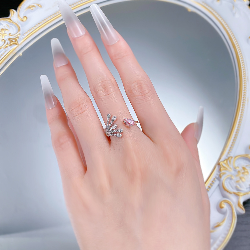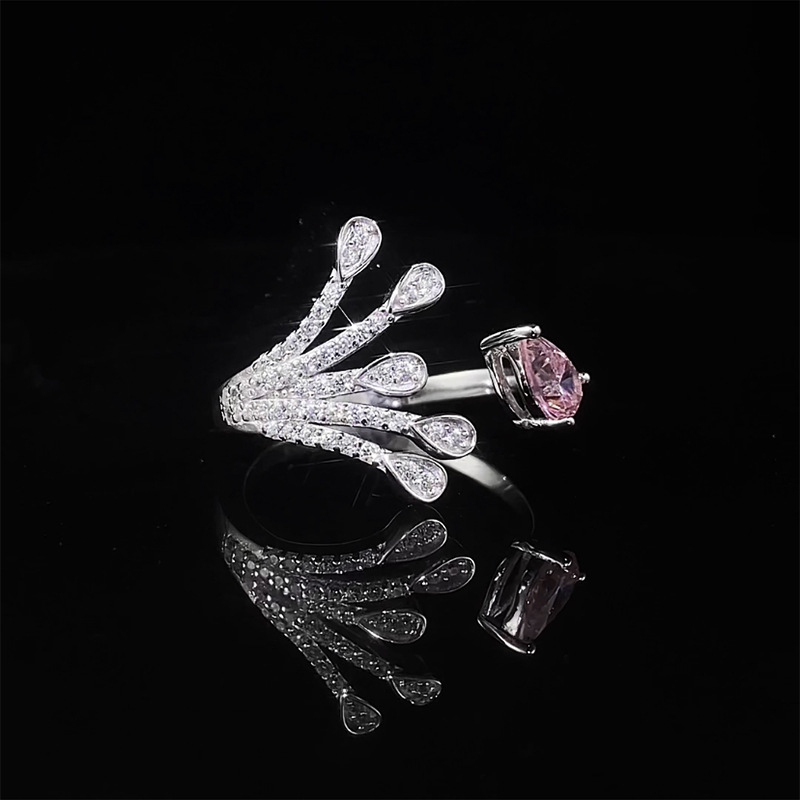 Design:Featuring a 4*6mm golden-ratio pink diamond as the centerpiece, complemented by a micro-paved teardrop design on the opposite side to enhance depth and asymmetrical beauty.The teardrop shape reflects a confident and elegant style.