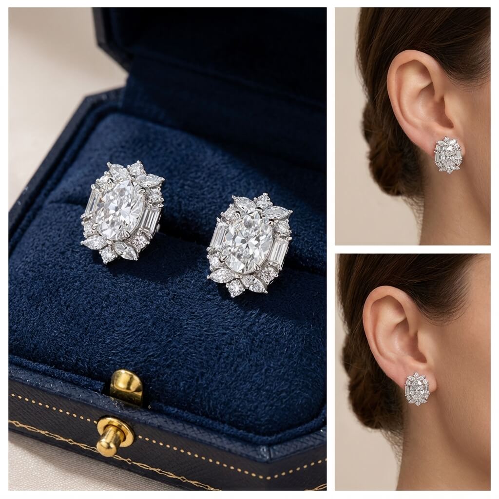 Craftsmanship:Utilizing a user-friendly S925 silver ear pin structure for a secure and comfortable fit.The 5g precious metal weight combined with heavy-duty setting techniques ensures all stones are held securely while providing an incomparable fit for daily professional wear.