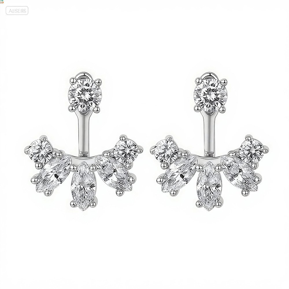 \Design:Featuring top-tier Moissanite at the center with professional irregular geometric setting artistry, consisting of a single round stud and a fan-shaped jacket of marquise stones.This 2-in-1 structure enhances depth and allows for versatile styling, reflecting a confident and elegant style.