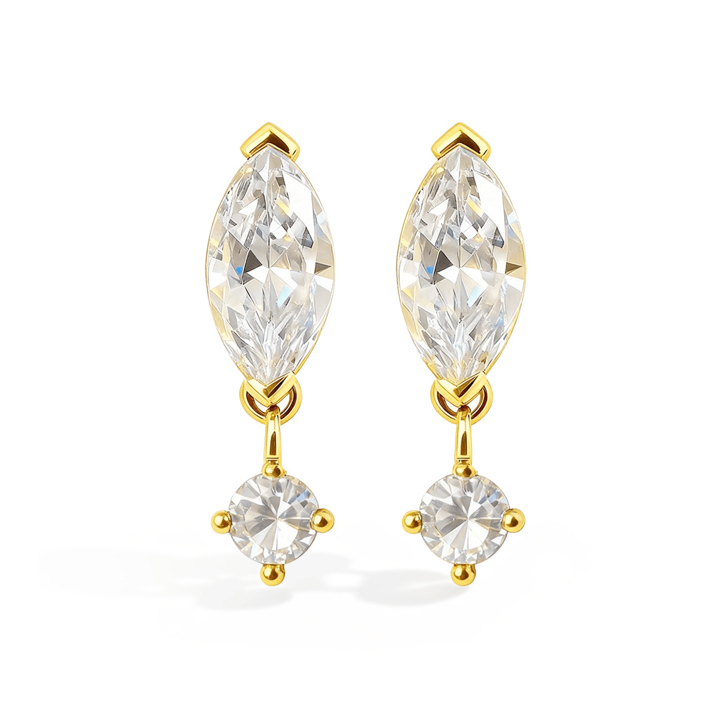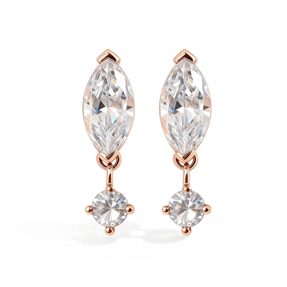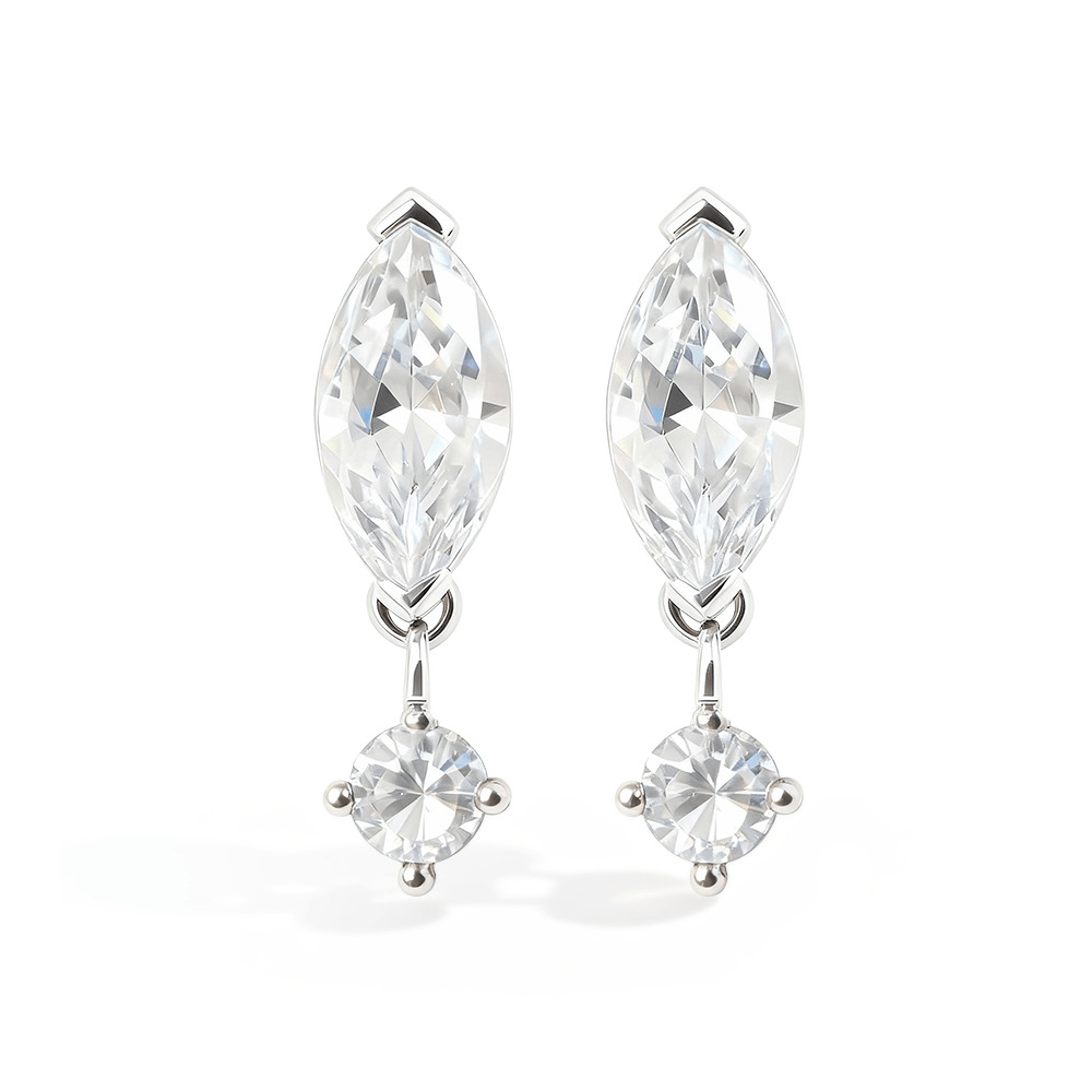Design:Featuring high-brilliance marquise-cut Moissanite at the center with professional geometric setting artistry, accented by a delicate round stone below.This unique combination enhances depth and elongation, reflecting a confident and elegant style with every movement.